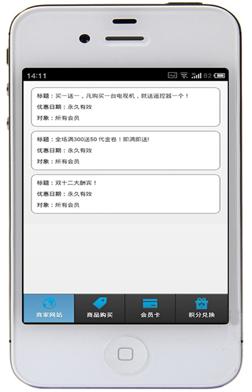 所有在后臺添加的優(yōu)惠消息,將會(huì)顯示在列表中!