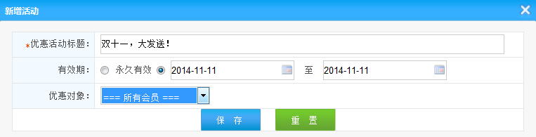2.優(yōu)惠活動(dòng)期限:設(shè)置這次活動(dòng)的期限,可以長期有效,也可以一段時(shí)間有效